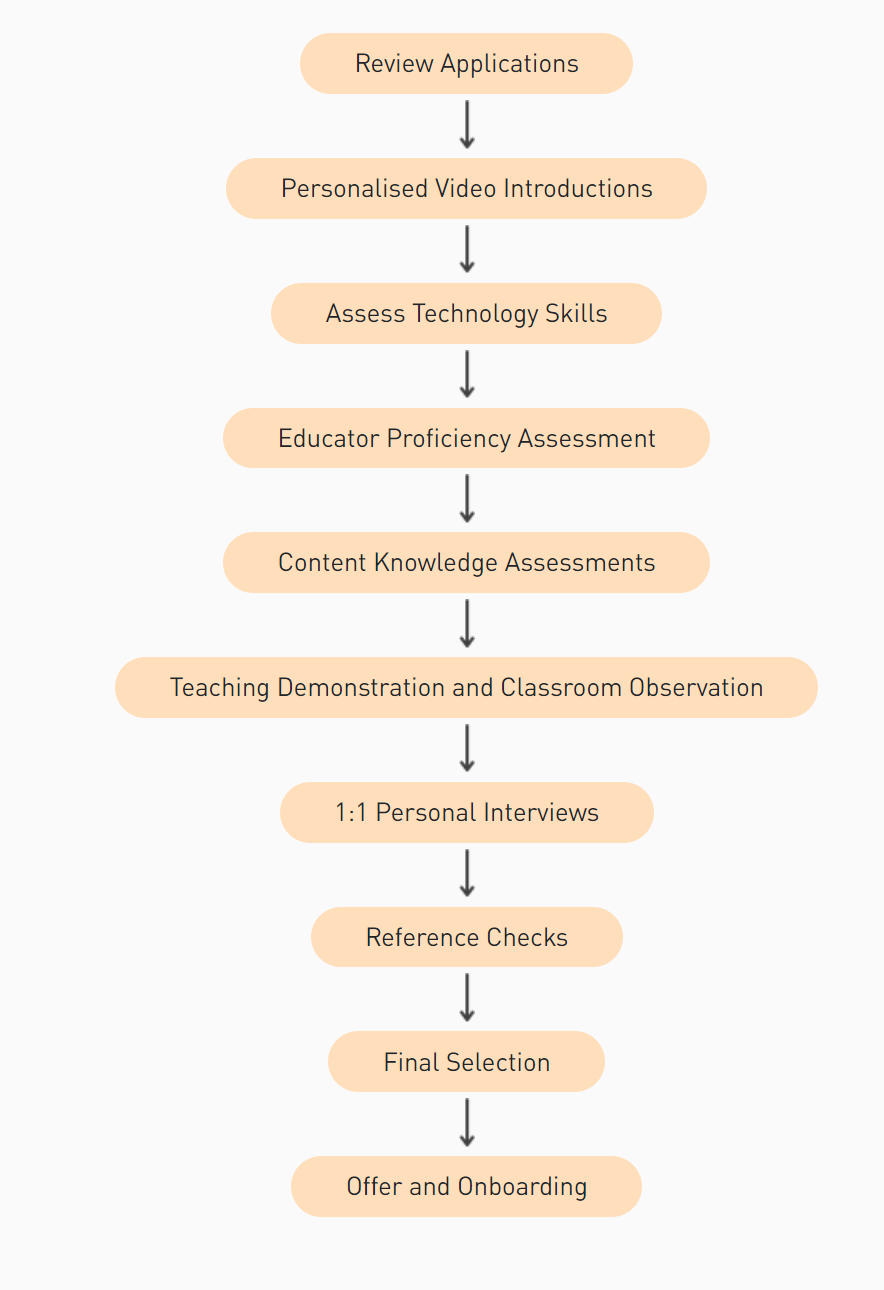 Through these rigorous evaluation steps, we ensure that we select passionate and capable educators who are dedicated to fostering a positive and enriching learning experience for learners at our institution.
